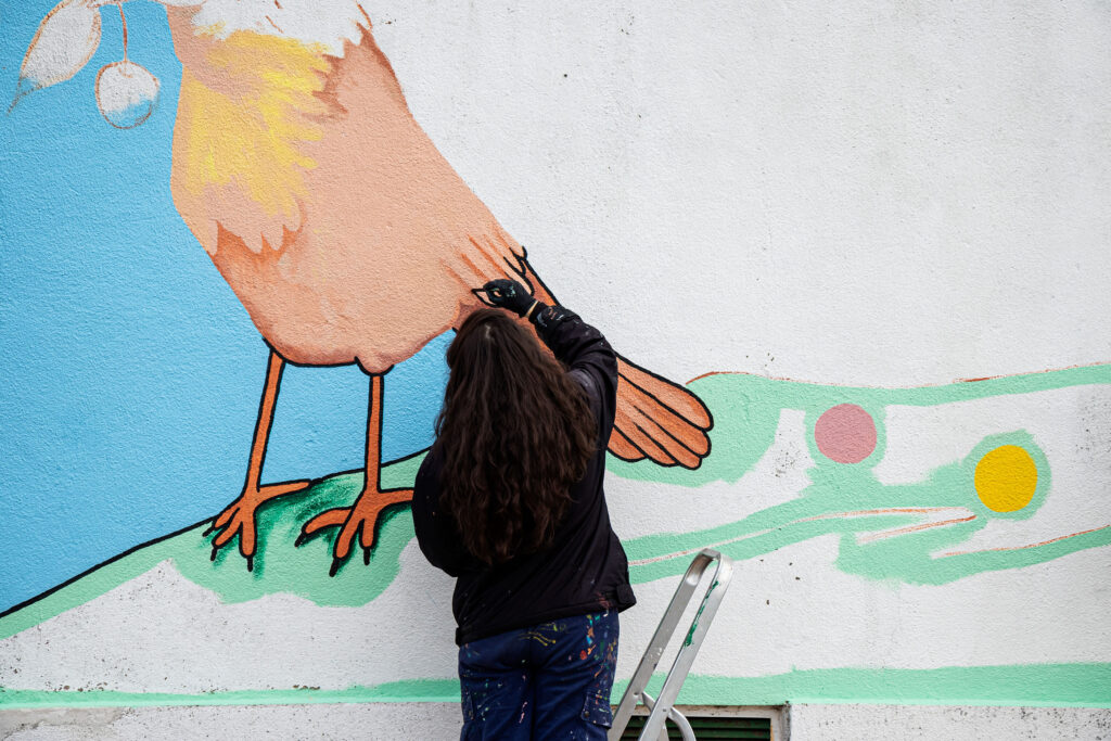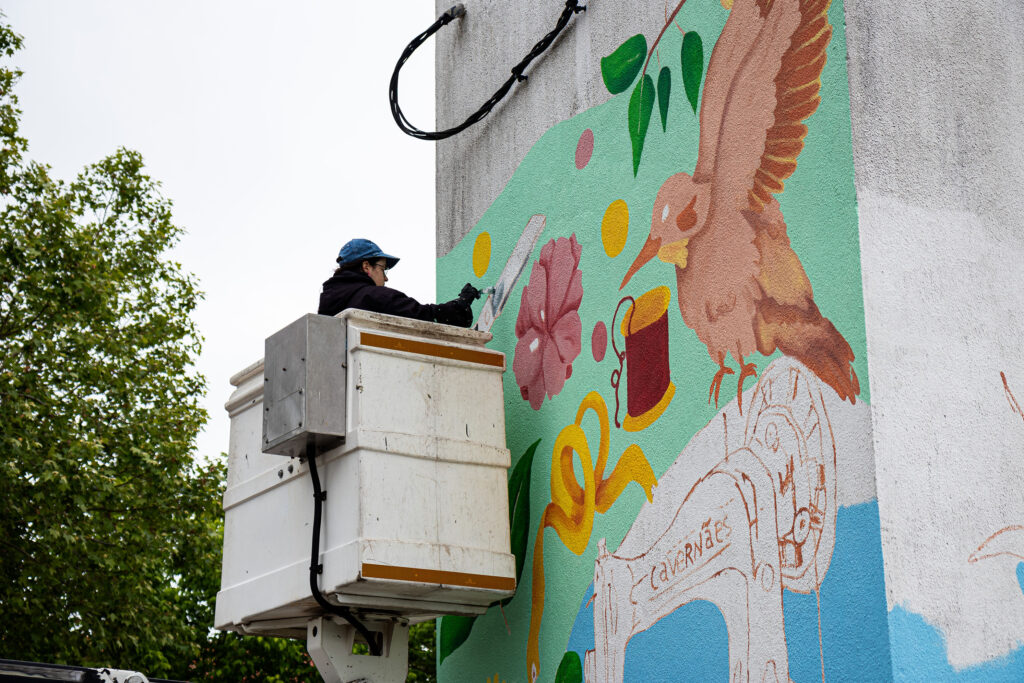 Pintura Mural em Posto de Transformação junto da Escola Primária, Cavernães, Viseu